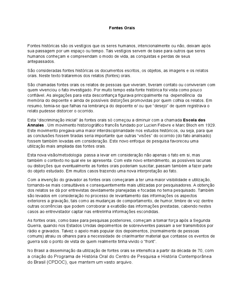 Exemplos De Fontes Históricas Orais