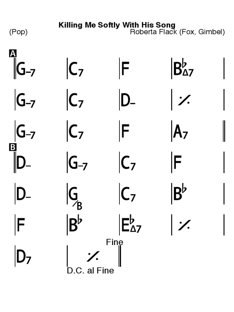 Killing Me Softly With His Song Sheet Music Roberta Flack Real Book Melody, Lyrics & Chords