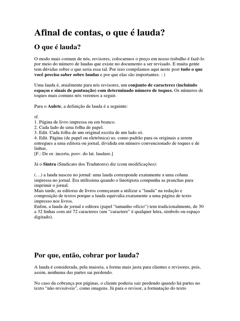 O Que é Uma Lauda De Texto Texto Exemplo