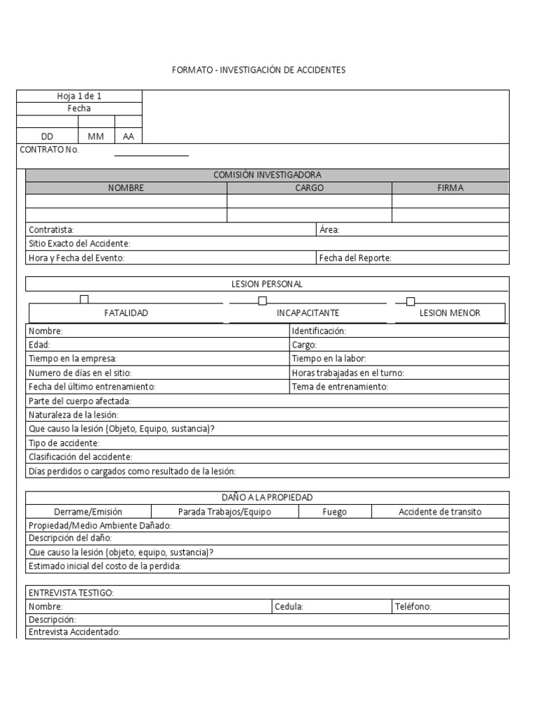 Formato de Investigación de Incidentes y Accidentes de Trabajo Lesión Bienestar